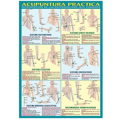 Lámina plastificada, ilustrada a todo color,a dos caras, que incluye un gráfico de los diferentes puntos más activos de acupuntura canina.