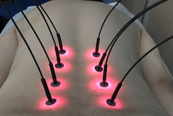 La estimulación láser de los puntos de acupuntura es equivalente a la estimulación con agujas y podemos estimular hasta 8 puntos a la vez.